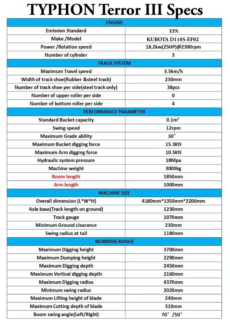 Whether the day is packed with loading, digging, moving, or cleanup work, TYPHON TERROR 3 Ton Mini Excavator feels ready for utility installs, landscaping, farm projects, and construction support. It is designed to help operators stay productive and comfortable all the way through the job.